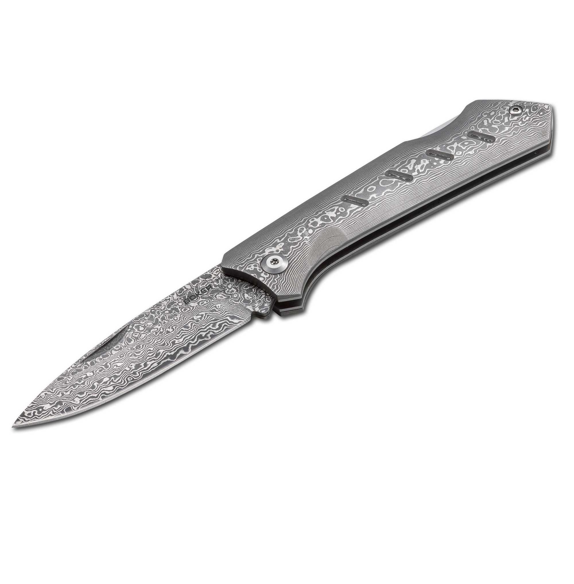 Das massive, aber dennoch elegante Damast Dominator bietet nicht nur eine schön gezeichnete Damastklinge mit 71 Lagen, sondern auch eine Griffbeschalung aus Damast.