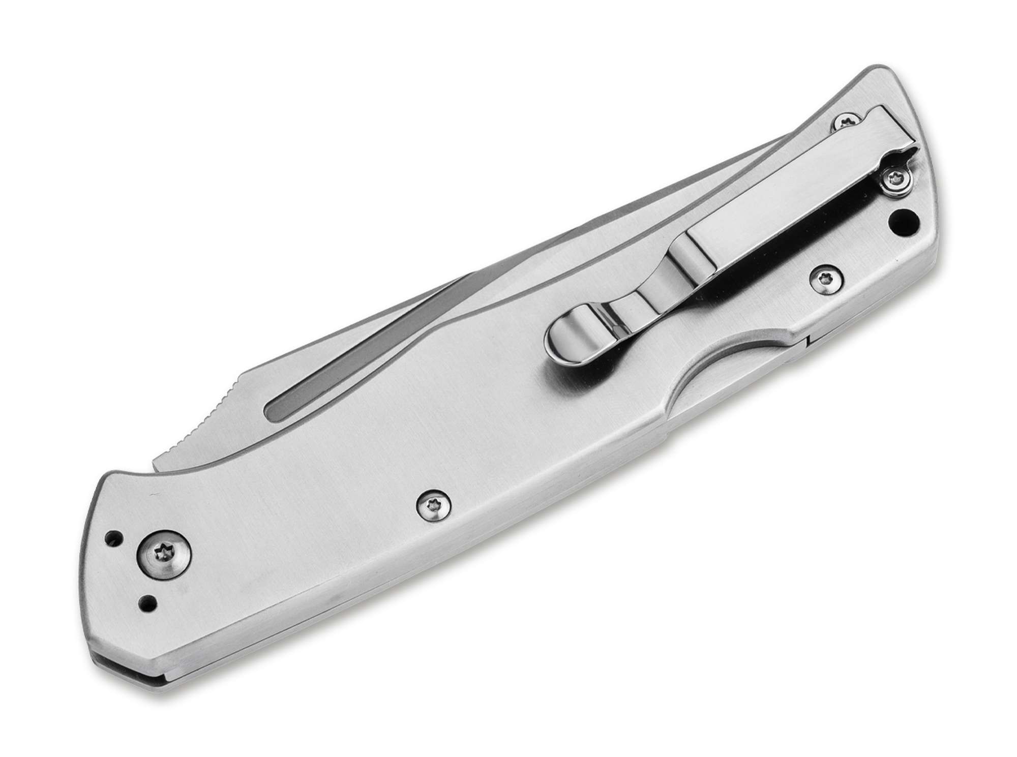 Auf kompromisslose Zuverlässigkeit und Langlebigkeit ist die Edelstahlkonstruktion des Griffes aus Rostfreiem 2CR13 (wird unter anderem verwendet zum Bau von chirurgischen Instrumenten und Dampfturbinenschaufeln) ausgelegt. Mit vierfach umsetzbarem Trageclip und Fangriemenöse zur Befestigung von Lanyards.