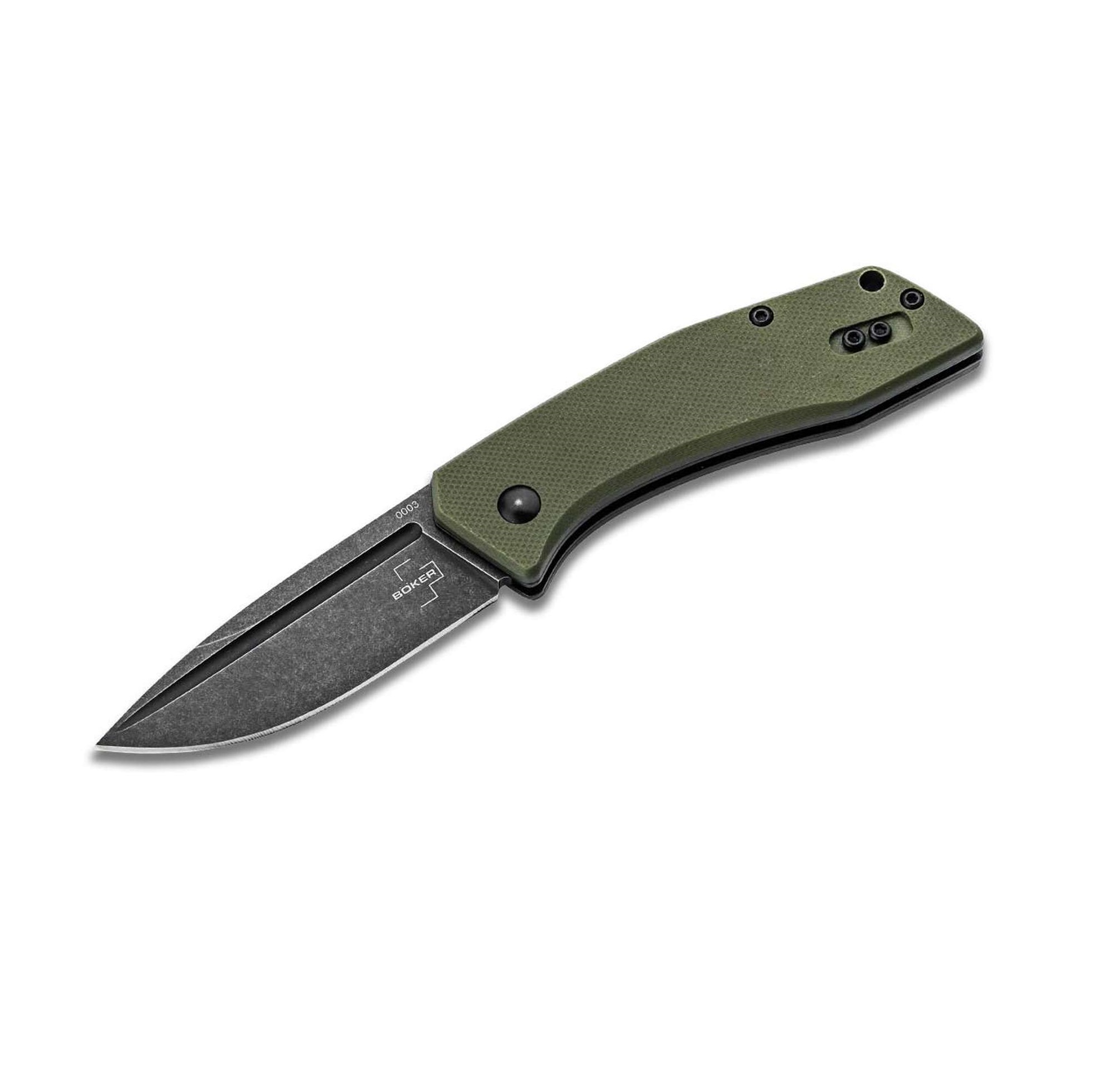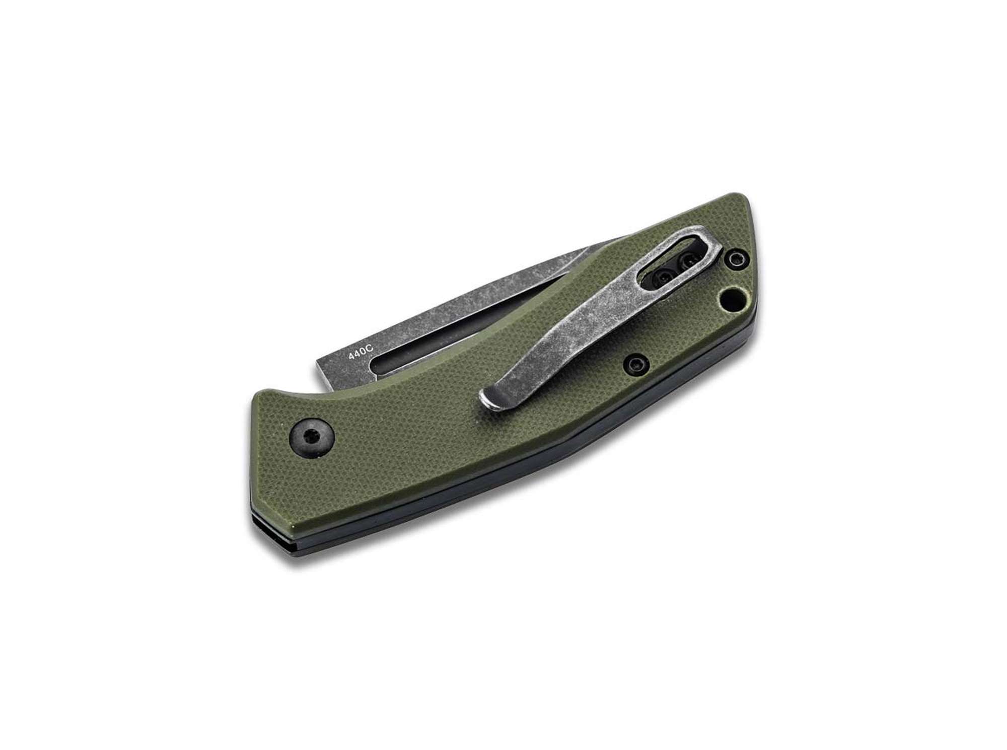 Keine Verriegelung, keine Einhandöffnung, kein Grund zur Sorge: Durch den großzügigen Nagelhau kann die massive Droppoint-Klinge aus 440C angenehm geöffnet werden, während der Slipjoint mit kraftvoller Feder Stabilität pur liefert. Routiniert zerschneidet das Taschenmesser Kartons, Seile oder Verpackungen. Ein feinherbes Black-Stonewash-Finish der Klinge passt perfekt zu den ergonomischen Griffschalen aus gedecktem, olivgrünem G10 und sorgt damit für die taktische Würze.
